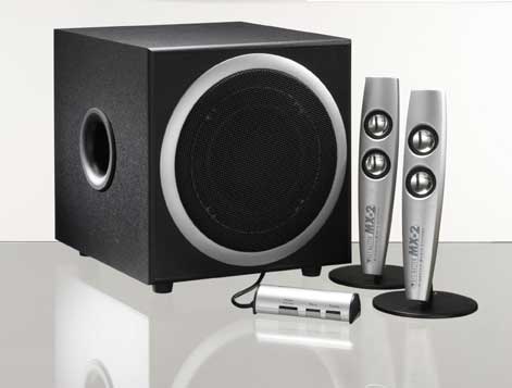 Lautsprecher: 2 Lautsprecher und 1 Subwoofer